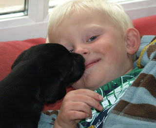 Eftersom Thomas var til Skinners Cup på Highclare i England har Mathias og jeg siden torsdag været alene hjemme med alle hundene og hvalpene - og vi har skam haft travlt - der skal spules , renses - kæles og klappes. Hvalpene er på skift med inde i huset og søndag var belønningen til min altid trofaste kenneldreng en tur i drive ind på Mc Donalds. Og så tog vi alle hvalpene med i bilen - sikke en jammer til at starte med, men med beroligende klap så faldt der ro over hvalpeflokken, der endte med at falde i søvn - det var også en meget træt kenneldreng, der blev puttet efter et happymeal:-)